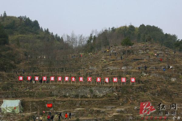 上午9时,吉首市矮寨坡头人来人往,一片忙碌,州市领导和干部群众一起植树造林,干得热火朝天。