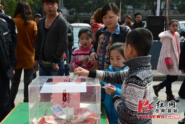 200元、50元、10元、1元、2角,市民们纷纷慷概解囊,就连孩子们也捐献出了自己的零花钱,其中岳阳县民政局现场捐款3000元、微水爱心志愿者协会捐款1000元、金维纳老总捐款1000元。