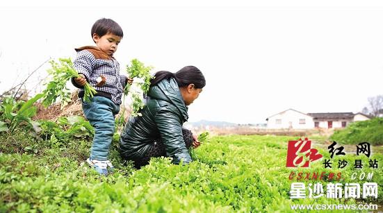 在长沙县高桥镇高桥村荷花组,一条约莫3 米宽的水渠中长满了密密麻麻的水芹菜,和普通种植芹菜相比,它的身材更显纤细,颜色更深,而且散发出阵阵清香。绿油油的水芹菜吸引了不少前来采摘的市民。河边上,一位娭毑带着孙子正在采摘。“我就住在附近,经常会过来采,这里的水芹菜又嫩又好吃,很多城里人都特意来这里采。”不一会儿,这位范娭毑就采了满满一大把。
