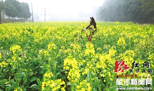沿S207驱车北上,刚进入开慧镇,道路沿线金灿灿的油菜花就映入眼帘。虽然天空中下着小雨,记者发现还是有游人被成片成片的油菜花所吸引,停下脚步走入花丛中拍照留恋。“我们是刚好路过这里,看到这成片的油菜花,不由自主地想要留个纪念。”正从乡里赶回星沙城区的黄女士告诉记者。