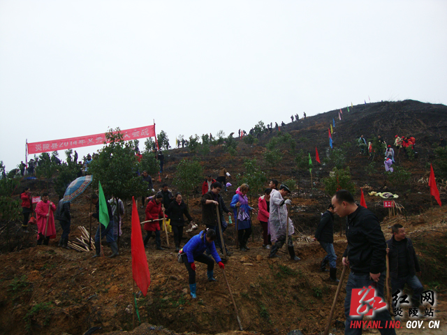 红网炎陵站3月12日讯(分站记者 彭新平 通讯员 周建伟 肖青)3月11日,炎陵县委副书记、县长刘正平等县领导与县直部门2000余名干部职工,冒着绵绵细雨,来到鹿原镇新坪村义务植树基地挥锄植绿,拉开了春季植树造林活动的序幕。