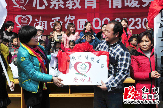 红网保靖站3月12日讯(通讯员 彭司进)总有一次旅程,让你难忘;总有一道风景,印在心底。3月9日,高高的吕洞山下新绿点点,暖意浓浓,湘西家园QQ群的20多名群友,不畏路途艰难来到了保靖县水田河镇夯相苗寨开展爱心助学。此次助学活动,网友们为夯相小学捐助了书柜、兵乓球桌、课外书籍等,为28位留守儿童、支教教师赠送了爱心礼品,物质折价达7200元。