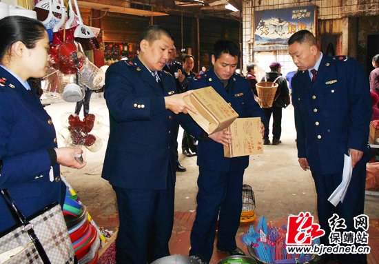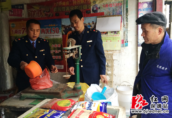 红网保靖站3月13日讯(通讯员 王俊芝)为营造合法、有序的市场竞争秩序,按照省、州工商局的统一部署,3月11日,保靖县工商局在县沿江大道广场举办2014年“红盾护农、整治虚假广告、打击制售假冒伪劣商品”三大专项整治行动启动仪式。随后,全局集中人力对迁陵城区商贸中心、农资市场、超市批发部展开了全面检查。