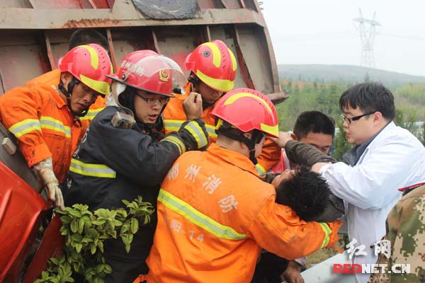 经过民警、消防官兵、医护人员、施救队员5个多小时的奋力救援,上午11:00,驾驶员吉某被安全救出,且只有一点皮外伤。货车司机和家属对民警行动迅速和有效处置表示感谢。