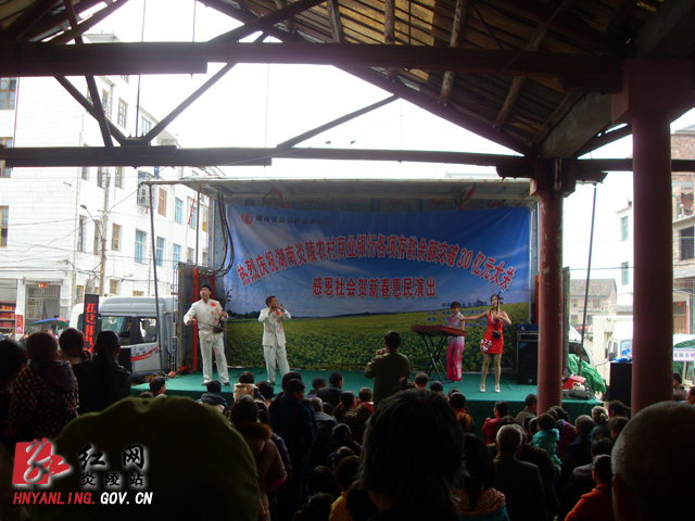 红网炎陵站3月24日讯(分站记者 彭新平 通讯员 李思思)3月21日,是炎陵县十都镇赶集的日子,炎陵委宣传部联合炎陵文化艺术团“送戏下乡”活动在该镇热闹开锣,为数百名群众捧上一场精致的文化大餐。现场笔者看到不少的妯娌姐妹扶老携幼,兴致勃勃地来享受文化资源共享带来的欣喜与满足。