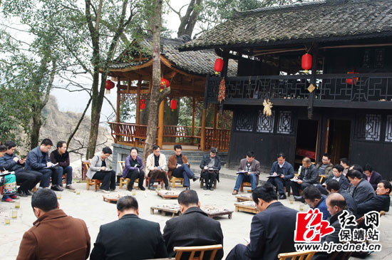 在谈到今年如何开展建整扶贫工作时,郭建群强调,建整扶贫首先要做好规划,规划要细。县里做规划,工作组也要做好规划。要认真规划,力争让全村都能够享受到建整扶贫的成果。通过前期的建整扶贫工作,吕洞村的硬建设施建设已基本完成,在继续完成通村路建设、村茶叶加工厂、村部建设等的同时,建整扶贫工作的重心要转移到产业发展与文化内涵发掘工作中来。要继续发展以保靖黄金茶产业为主、中药材产业、蔬菜产业、农家旅游产业相结合的产业发展模式。要多方研究、多方探讨,认真发掘好吕洞山的文化内涵,将吕洞村建设成苗族文化旅游的体验区。通过旅游产业的带动,让村民得到实实在在的实惠,在武陵山区探索出一条建整扶贫与旅游发展相结合的模式。