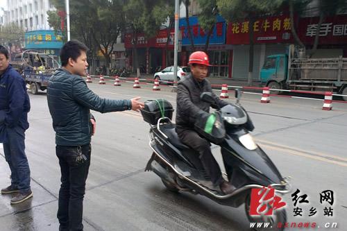 群众自发劝导摩托车驾驶员