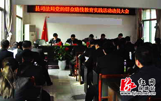 3月25日,保靖县司法局召开党的群众路线教育实践活动动员大会,对开展党的群众路线教育实践活动进行了安排和部署。副县长、县公安局局长李军,县第七督导组组长、副县级干部田廷斌,县第七督导组副组长、县人社局党组成员、副局长龙利农到会指导。