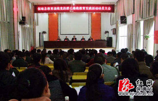 3月21日下午,保靖县教育系统党的群众路线教育实践活动动员大会在县实验小学会议室召开。县人民政府副县级干部、县委第十督导组组长彭腾翔,第十督导组成员、县纪委行政效能监察室主任、正科级纪检监察员彭万贵,第十督导组成员、县委统战部副科级纪检员毛巧莹参加会议。