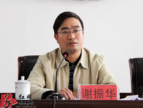 县委书记谢振华给与会的党员干部上了一堂生动的群众路线教育党课。