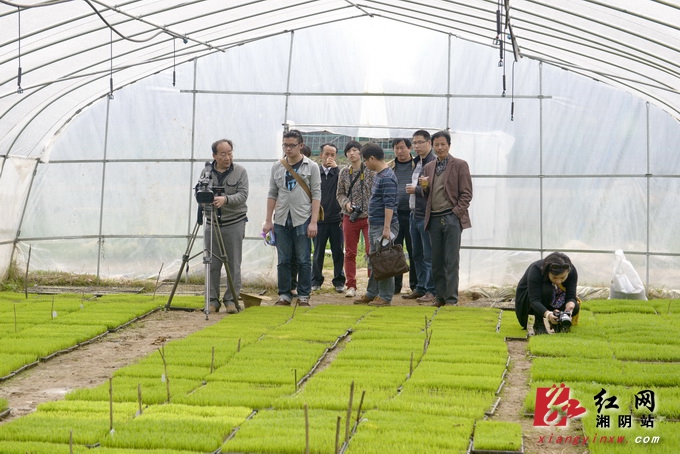 各大媒体采访湘阴鹤龙湖镇鸿运农机服务专业合作社的大棚育秧(叶旭峰 摄)