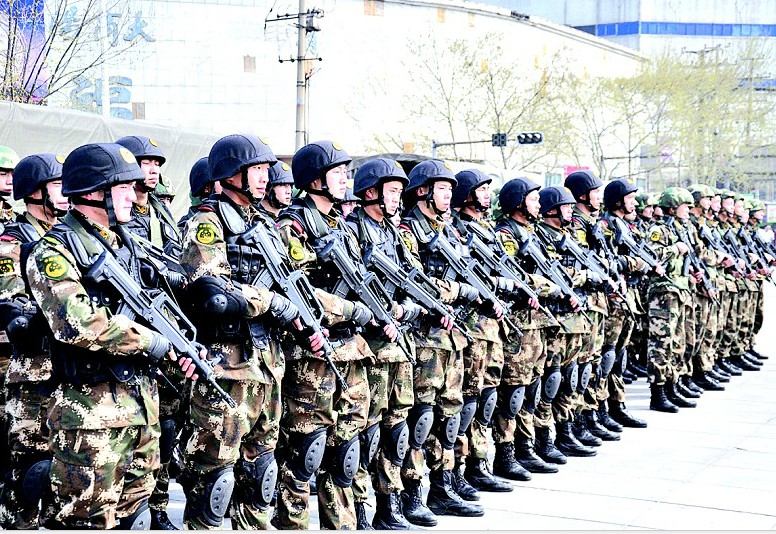 3月26日,武警岳阳市支队在巴陵广场开展实战化应急处突反恐演练。演练按照封控现场、驱散人群、抓捕首恶、保护群众的战法展开行动。此次演练全面检验了反恐特战队员的战斗力。红网岳阳站 岳阳日报记者 彭雨琪 通讯员 姜 炜 摄