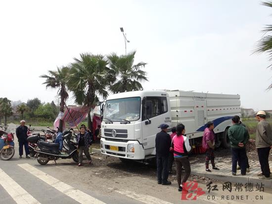 在朗州北路,一辆环卫车辆因乱倒垃圾被村民扣留。
