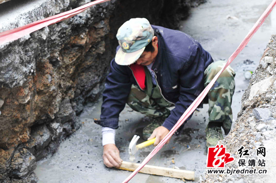 工人在修整污水管道 周改玲 摄
