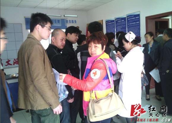 红网天心分站4月8日讯(分站记者 赵冻连)“先抽我的,我是A型血。”“抽我的,我身体棒,血多。”4月8日上午,春风习习,文源街道文源社区前一辆无偿献血车刚一停稳,就排起了长队,填写献血征询表、体检、化验、采血……