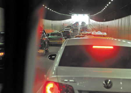 昨日下午2时30分,营盘路湘江隧道由西往东方向车流量大,车行缓慢。昨日是清明小长假最后一天,从昨日中午开始,星城迎来返程客流高峰。 王志伟 摄