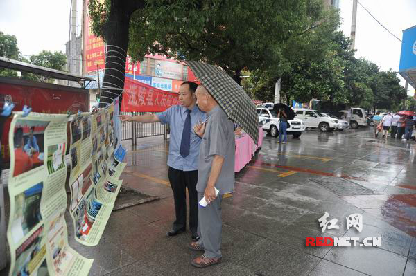 红网怀化4月10日讯(通讯员 张清彦 毛路洁)为深入开展党的群众路线教育实践活动,4月10日,湖南省沅陵县检察院围绕“密切联系群众,创造和谐沅陵”的宣传活动主题,将全院干警分成三组,一组走进城内店铺,将法律知识送到商家手上;一组走进社区居民家中,将宣传册送给社区居民;一组在街心花园和龙舟文广场“摆摊设点”开展普法宣传活动。