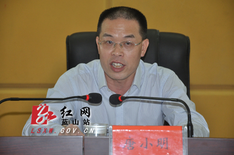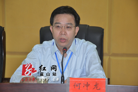 (蓝山县委书记何冲龙在会上作重要讲话)