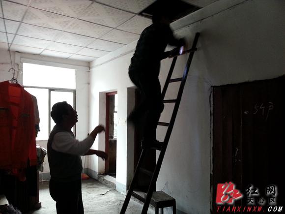 社区书记刘珍要金师傅不要着急,趁着这两天天气好,社区群工站一定督促该问题解决,并当场拨打了施工老板电话,要他尽快赶到现场来查看漏水原因。第二天大清早,施工老板就带着2名民工赶到了现场,通过爬到屋顶查看哪个位置漏水,发现不是2011年提质改造导致的问题,而是家里屋顶修缮后的瓦片盖短了导致漏水。社区群工站工作人员又跟施工老板说好话,让他好人做到底,帮助年老无助的金师傅解决该问题,于是施工老板又买好合适的瓦片帮金师傅盖好,为了避免后患,还提了两桶水爬到屋顶往下倒测试是否漏水,确定无一滴漏水才离开现场。
