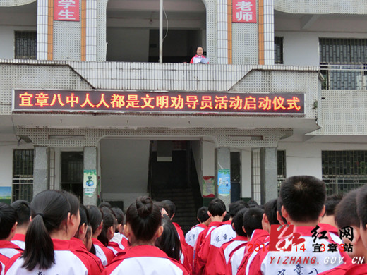 活动在庄严的国歌声中拉开了序幕。宜章县八中校长廖曦作了激情洋溢的讲话。宜章县宣传部副部长刘天茂宣布活动启动。