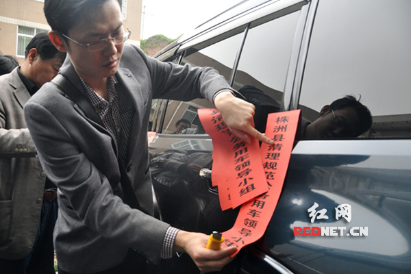(张贴写有“株洲县清理规范公务用车领导小组”的封条)