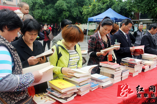 当天上午,县委宣传部、县新华书店在星火广场举行免费赠书活动,8000余册涉及美食、养生、书法、名著等内容的各类图书,被众多市民捧在手上,争相阅读。