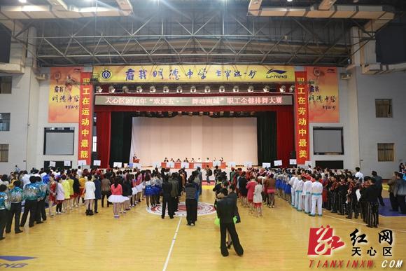天心区开展2014年“欢庆五·一 舞动南城”职工全健排舞大赛。