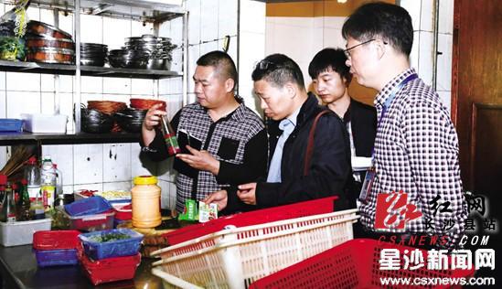 (长沙县食安办昨日对星沙大道与凉塘路沿线的餐饮店、食品店进行了食安检查。 刘晓东 摄)