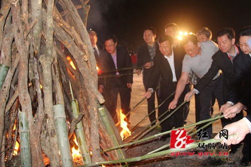 与会领导共同为晚会点亮了篝火。