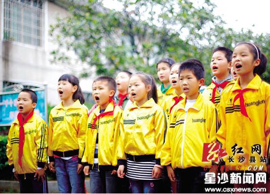 不单单是黄龙小学,长沙县中小学校中有校歌的不在少数。“采一束阳光爱舞鞋,捧一缕春风醉心田,实验小学是金色的摇篮……我们每周升旗的时候学生都会唱校歌。”星沙实验小学钟奕老师告诉记者。