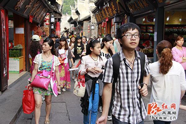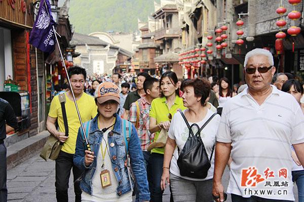 红网凤凰站5月3日讯(分站记者 黄晓军 吴文星)五一小长假以来,湖南省凤凰县文化旅游喜迎新高峰,无论是凤凰古城,还是山江苗寨,游人如潮。据统计,5月1日当天,凤凰县接待国内外游客6.27万人次,实现旅游收入0.4亿元,同比分别增长101.3%和110.1%。
