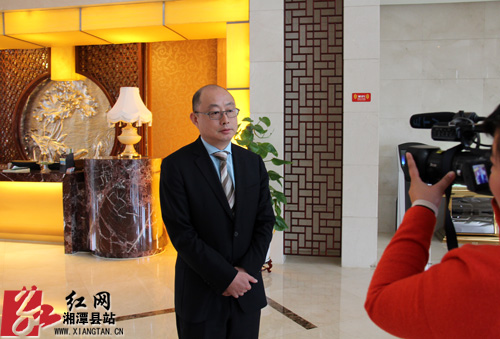湘潭鑫田国际大酒店总经理张樑接受记者采访。