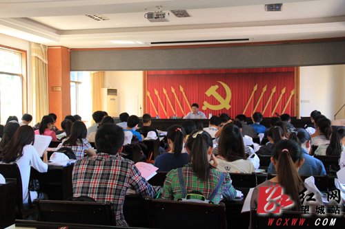团区委负责人高阳介绍,“5月5号下午,我们对70名志愿者进行了接待礼仪方面的系统培训,另外对活动进行了分工,让志愿者之间相互熟悉,志愿者分为机场接送志愿者、武广南站及火车站接送志愿者、会务报道志愿者、会场指引志愿者,志愿者们在熟悉了解活动的具体情况后,还要对活动现场进行踩点。”来自中南大学外语学院的志愿者史倩文说,“自己对志愿服务比较感兴趣,以前也参加过类似的志愿服务,有一些经验,参加志愿活动,一方面希望自己的经历更加丰富,另一方面也感受到了作为一名志愿者的快乐,今天团委发放了工作手册,自己将会好好研读,以饱满的热情做好这次志愿服务。”