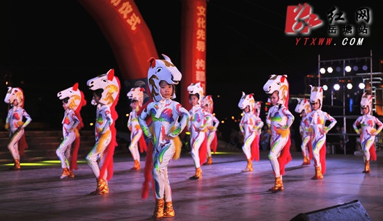 (伴随着欢快的腰鼓,一首《东方红》拉开了活动的序幕。)