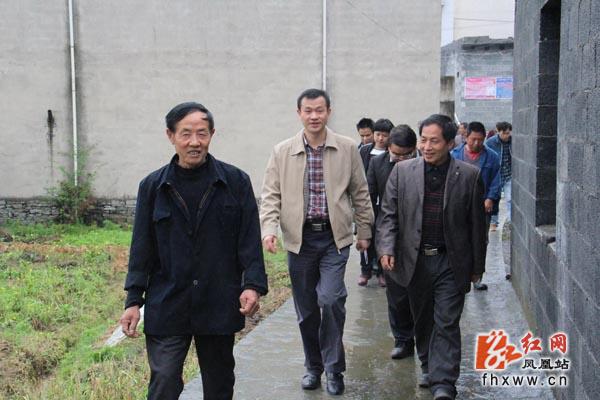 (凤凰县委常委、县纪委书记周拥军(前中)在扶贫帮扶村调研。)