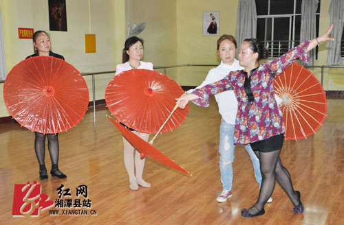 湘潭县文化馆舞蹈专干为“油纸伞姑娘”编排动作。