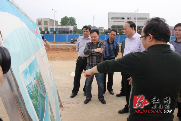 杨晓军向孙银生一行介绍昭山项目建设情况。