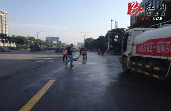 红网岳塘站5月13日讯(分站记者 胡旭丹 通讯员 刘毅)5月12日清晨5点左右,湘潭市岳塘区市容环卫所一位环卫工人在巡查中发现,吉安路市粮站路段有大面积的油渍,给过往车辆造成安全隐患。随即,该所组织人员及时处理,消除了隐患。