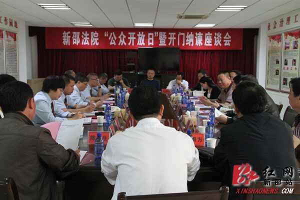 参观完之后,新邵法院院党组书记、院长邓星西又邀请大家一起召开了“开门纳谏”座谈会,广泛听取社会各界对法院工作的意见和建议,以便更好地改进法院工作。大家对新邵法院组织的开放日活动给予了好评,对新邵法院各项工作取得的成绩给予了充分肯定,同时也希望该法院能够更好地发挥审判职能,服务民生,服务新邵经济社会发展。
