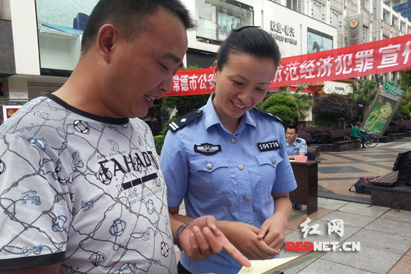 红网常德5月15日讯(通讯员 吴林芳)5月15日是全国打击和防范经济犯罪宣传日,湖南省常德市公安局在市区金钻商业步行街广场举办了主题为“打击防范经济犯罪·护航改革·保障民生”的现场宣传活动。活动现场,民警通过展示典型经济犯罪案例图板,向社会各界充分反映公安经侦部门在维护市场经济秩序、严打制假售假等方面取得的突出成果;发放《警惕传销手段》、《警惕银行卡犯罪》等宣传资料、卡片2万余份,向广大群众揭露常见多发的制假售假、传销、非法集资等与群众利益密切相关的经济犯罪手段,提高群众自我防范意识;设立民警咨询台,为现场群众提供法律咨询服务和相关政策宣传讲解300余人次。