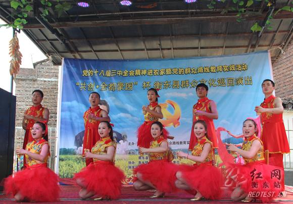 红网衡东站5月15日讯(分站记者 邓晓斌 向文韬)5月13日上午,2014年“欢乐潇湘·幸福衡阳·美丽衡东”群众文化巡回演出首站走进白莲镇马房村。10多个歌舞、小品、双簧及小戏等极具地方特色的节目在马房村级活动中心精彩上演,用群众喜闻乐见的文艺形式宣传党的路线、方针、政策,宣传党的群众路线教育实践活动,让附近的群众在尽享精神文化大餐的同时,深受教育和感染。2014年“欢乐潇湘·幸福衡阳·美丽衡东”大型群众文化活动由群众文化巡回演出和首届广场舞大赛两个部分构成。其中“欢乐潇湘·幸福衡阳·美丽衡东”群众文化巡回演出已于4月28日晚正式启动,首届广场舞大赛也正在积极筹备中。今年,衡东一改往年在县城举办大型群众文艺汇演的模式,结合党的十八届三中全会精神进农家、党的群众路线教育实践活动大宣传,采用巡回演出方式,将群众文艺送到全县24个乡镇,让乡村老百姓同等享受文化改革成果。