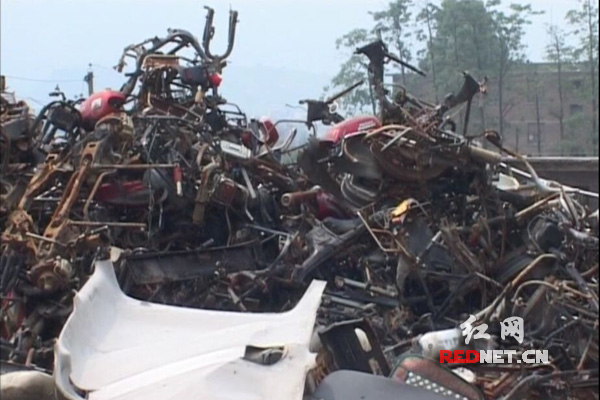 (湖南省汝城县公安局交警大队将153辆达到报废年限的机动车进行集中销毁报废。)