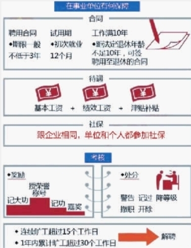 新华社15日受权播发《事业单位人事管理条例》。这一条例是我国第一部系统规范事业单位人事管理的行政法规,将于7月1日起施行。条例确立了事业单位人事管理的基本制度,在公开招聘、聘用合同、社会保险、工资收入等方面的相关规定呈现出改革亮点。