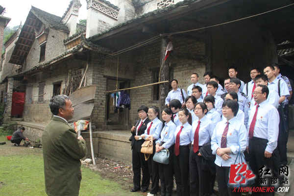 当天,新邵法院20余名青年党员干警在该院党组副书记、副院长梁甲晨的带领下,来到新邵县境内第一个党支部成立所在地—太芝庙乡庙边村革命旧址开展了“弘扬革命精神、践行群众路线”革命传统教育活动。
