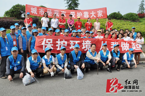迎接世界环境日,湘潭县近百名志愿者走上街头践行环保理念。