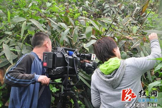 图为摄制组在芭茅溪乡实地拍摄采摘煊粽叶