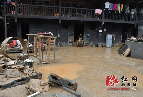 5月25日早上6点左右开始,辰溪县苏木溪瑶族乡遭遇持续特大暴雨袭击,多地爆发山洪,乡政府所在地三分之二房屋被淹,倒塌22栋,受灾十分严重。该乡的3条进乡公路沿线发生严重塌方,交通和电力完全中断,抗灾自救工作受到严重影响。