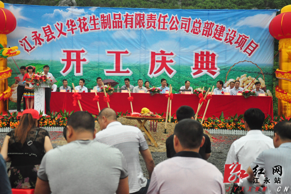 开工典礼由县委常委、县委办主任陈小平主持。县委副书记张建坤在仪式上致辞,并宣布义华花生制品有限责任公司总部建设项目正式开工。