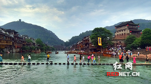 降雨的停歇,使得穿古城凤凰而过的沱江河水位终于下降,目前被淹没的跳岩景点、江边游步道露出水面,两座进行临时交通管制的木桥可以正常行走。受山洪影响的沱江泛舟亲水游项目也恢复运营,凤凰古城江景恢复如初,一艘艘游船在沱江上穿行,游客们也纷纷拿起相机、手机一边观光游玩,一边拍照留念,不亦乐乎。现在,凤凰古城的所有景点恢复运营,相关的旅游项目也正常营业。
