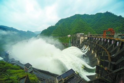 5月25日,凤滩电站开启四孔闸门泄洪。5月20日以来,凤滩水库流域普降大雨,导致凤滩电站水位达201.5米,接近防洪警戒线。根据省防汛抗旱指挥部指示,电站从25日13时开始泄洪,应对新一轮强降雨。王照云 龚幸福 摄影报道